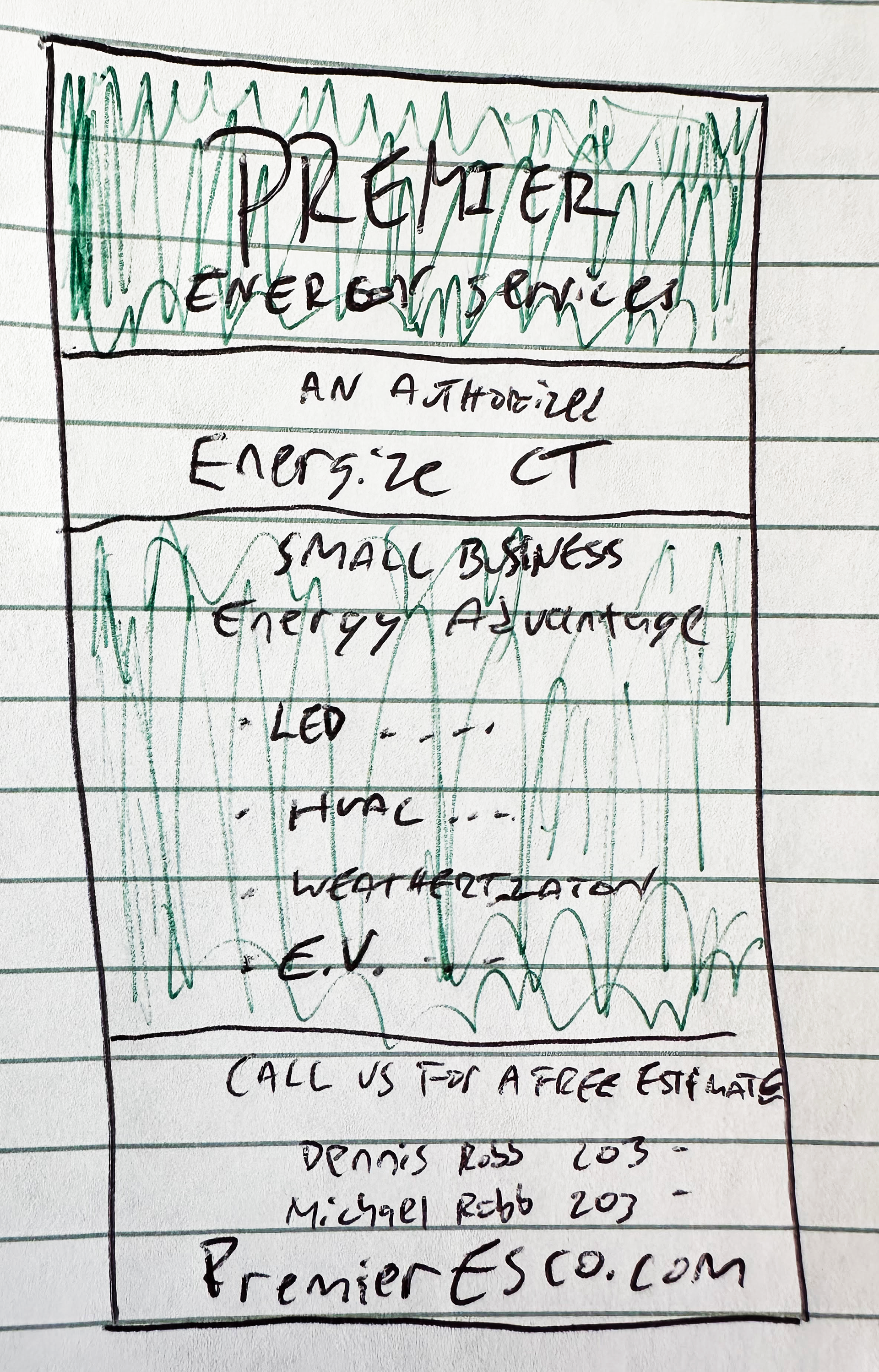 I used Adobe Illustrator to design a retractable banner stand for Premier Energy Services in Fall 2025. I transformed the client's sketch (left) into a print-ready design that aligned with their branding (right).